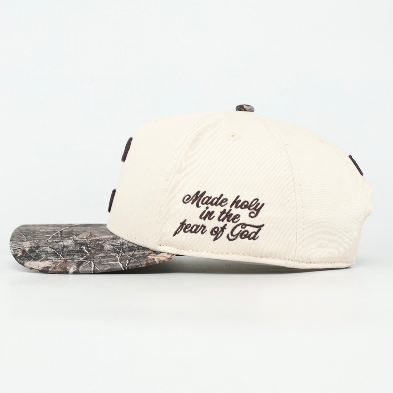 This hat is based off of the idea that, as believers, we are to be consecrated and set apart, âcleansing ourselves from everything that contaminates the body and spirit, completing holiness in the fear of God.â - 2 Corinthians 7:1 AMP. The reason for the camo is that, in a world where we could easily conform and blend in like camouflage, being consecrated and made holy calls us to STAND OUT. If we arenât standing out, we canât be salt to others.Â